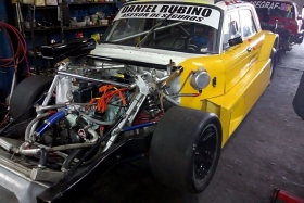 Gustavo Pastorino trabaja en el motor del auto de su hijo, Matías, para poder llegar a estar presente en la 9na fecha.