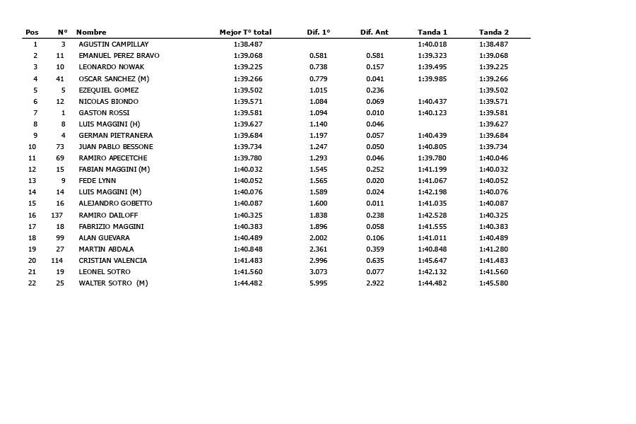 Finalizando la jornada de actividades por segunda vez salieron a pista los Procar 4000 clase A para ultimar detalles de puesta a punto y Agustín Campillay mejoraba lo realizado el primer ensayo para quedar como dominador en la general. 1min 38seg 487/1000 establecía el integrante del equipo Valencia Racing con su Dodge, dejando segúndo al Tiky Pérez Bravo por 581 milésimas y tercero a Leo Nowak por 738 milésimas sobre un total de 22 pilotos que tomaban parte del ensayo.