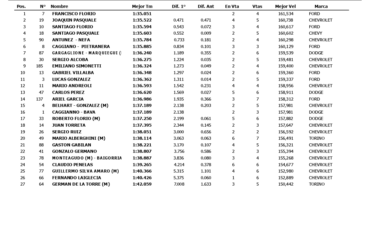 La clasificación se disputará a las 12.30hs dividida en dos grupos al igual que ensayo. Esto son los registros de la actividad;