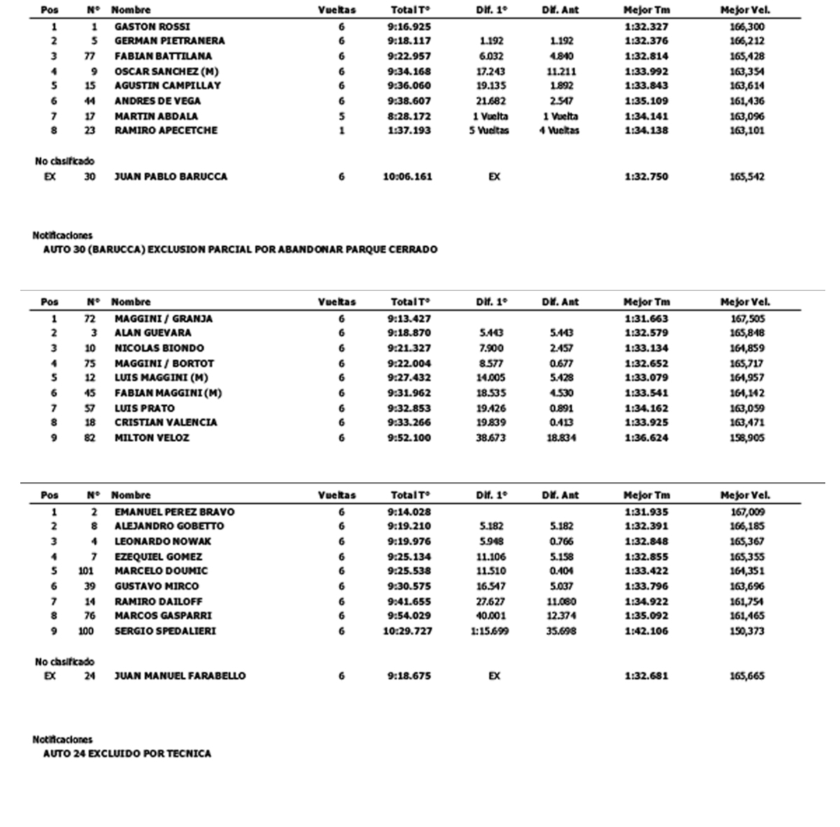 La última serie del día se la adjudicó categóricamente El Tiki Pérez Bravo sobre Alejandro Gobetto que finalizó en la posición de escolta, mientras que tercero quedó Leo Nowak. En esta serie Farabello había arribado segundo pero un problema técnico lo relego al último lugar. Esta serie fue la segunda más rápida.