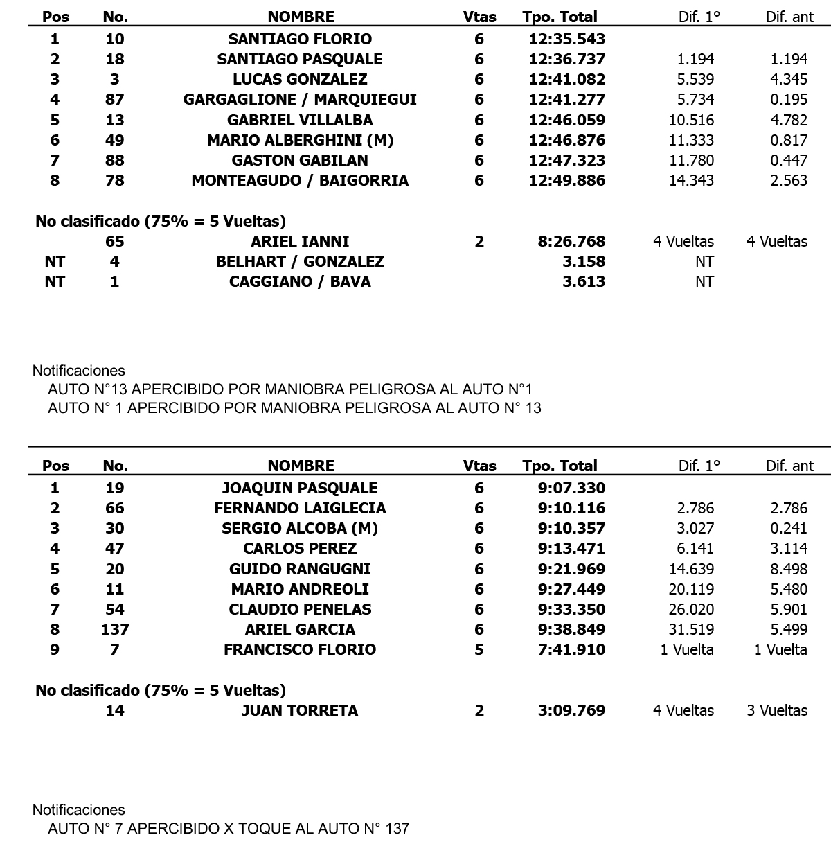 La serie de Coty Pasquale fue más veloz que la de Santi Florio, por lo cual mañana larga desde la posición de privilegio, compartiendo la primera fila con el de San Antonio de Areco, para reme